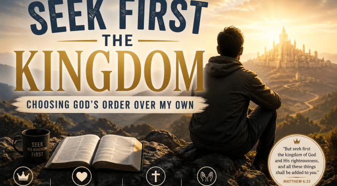 Seeking the Kingdom first means I do not come to God merely for help building my own kingdom. I come to Him because His Kingdom is greater, wiser, purer, and eternal. I come to Him because His righteousness is better than my ambition. His will is better than my preference. His timing is better than my urgency. His provision is better than my striving. His rule is better than my control.